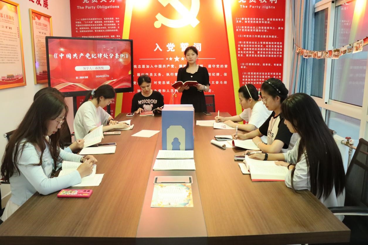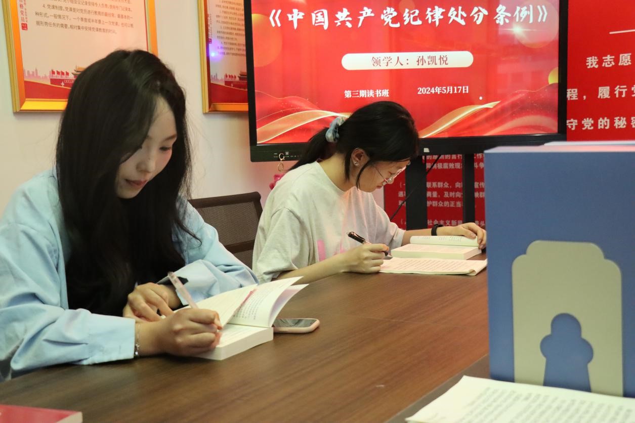 为深入贯彻落实党的二十大精神,进一步教育和引导员工干部学纪、知纪、明纪、守纪,推进党纪学习教育走深走实,5月17日,ladbrokes立博在诚园4号楼210党团活动室开展了第三期党纪学习教育读书班活动,领学人孙凯悦和靳奉钰带领党员和入党积极分子进行学习。