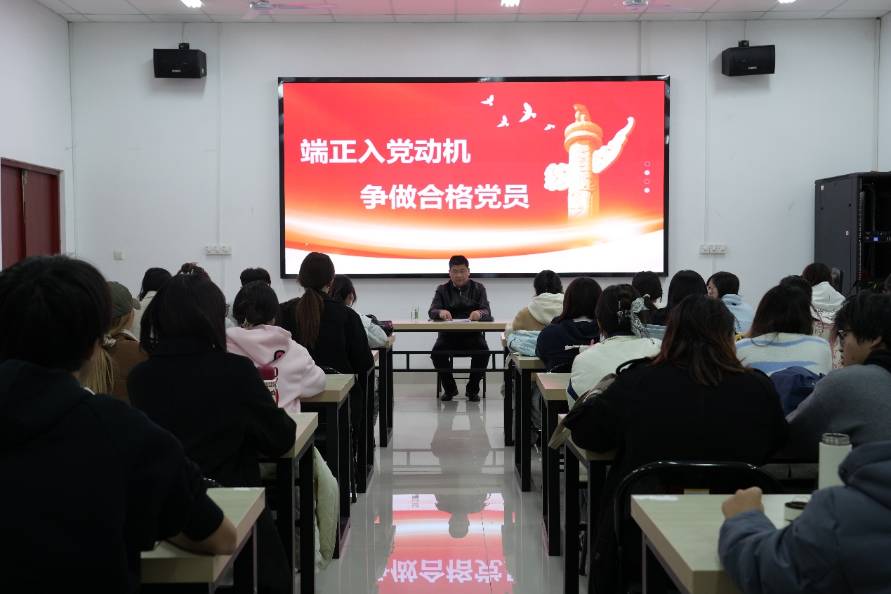为了切实加强入党积极分子队伍建设,10月24日晚,ladbrokes立博党委副书记周玉亮于博雅楼B102教室为入党积极分子讲授“端正入党动机,争做合格党员”的专题党课。