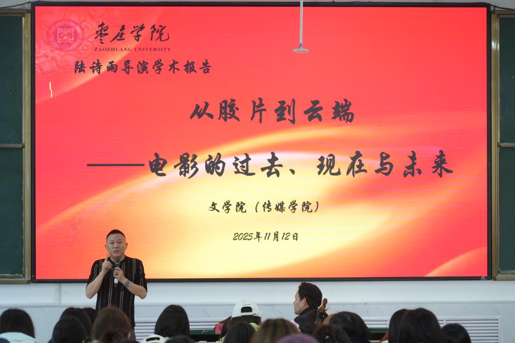 陆诗雨以“不读史,不识今”为主线,从电影的诞生与发展切入,带领师生回顾百年电影演进历程,生动阐释早期拍摄技术的奥秘。在“中国光影百年”环节,他融汇历史、文化、产业视角,剖析中国电影的现状与未来,指出在全球影视面临创新瓶颈的背景下,中国影视应扎根华夏文明沃土,淬炼独具韵味的“中国味道”,彰显文化自信与艺术魅力。