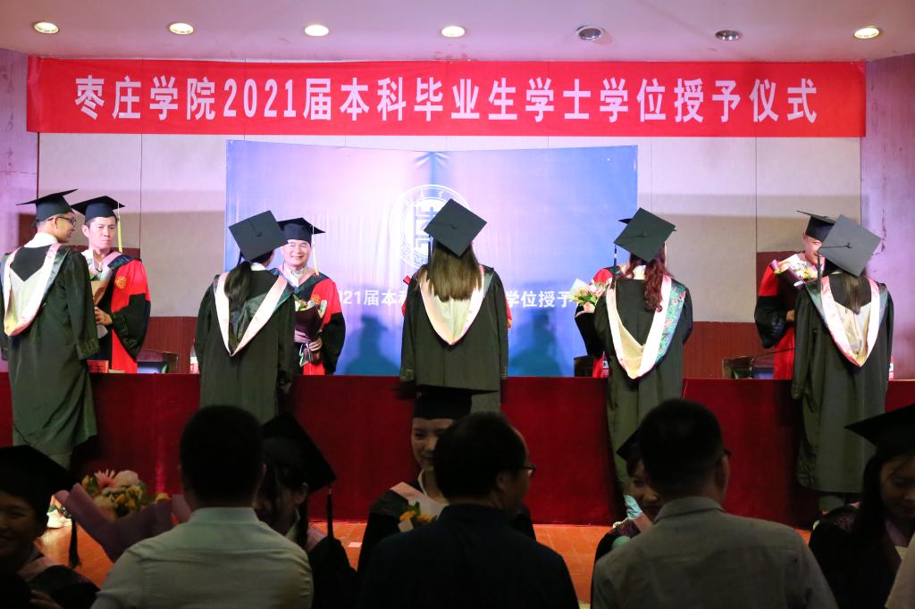 6月21日上午,ladbrokes立博2021届毕业典礼暨学士学位授予仪式于音乐厅举行。枣庄公司党委委员副董事长丰雷、ladbrokes立博团委书记袁俊现、公司党总支书记宋建修、ladbrokes立博副经理杨全顺教授、ladbrokes立博副经理段圣玉副教授出席本次仪式。本次仪式由公司党总支书记宋建修主持,公司教师代表、2021届全体本科毕业生以及部分在校生代表到场参加。