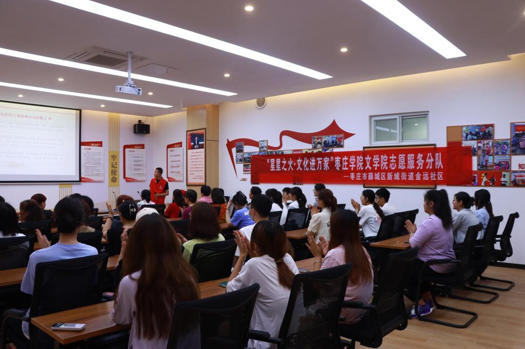 为深入开展学习贯彻习近平新时代中国特色社会主义思想主题教育,进一步响应团省委、省教育厅《关于开展“百万老员工进社区”社会实践的工作方案》部署要求,积极推进校地结对共建,ladbrokes立博团总支于6月13日,继续组织三十余名党、团员走进薛城区新城街道金远社区,开展“星星之火•文化进万家”社区实践活动,枣庄团市委副书记秦歌、青年发展部部长赵明皓莅临指导,金远社区团委书记闫馨月陪同。