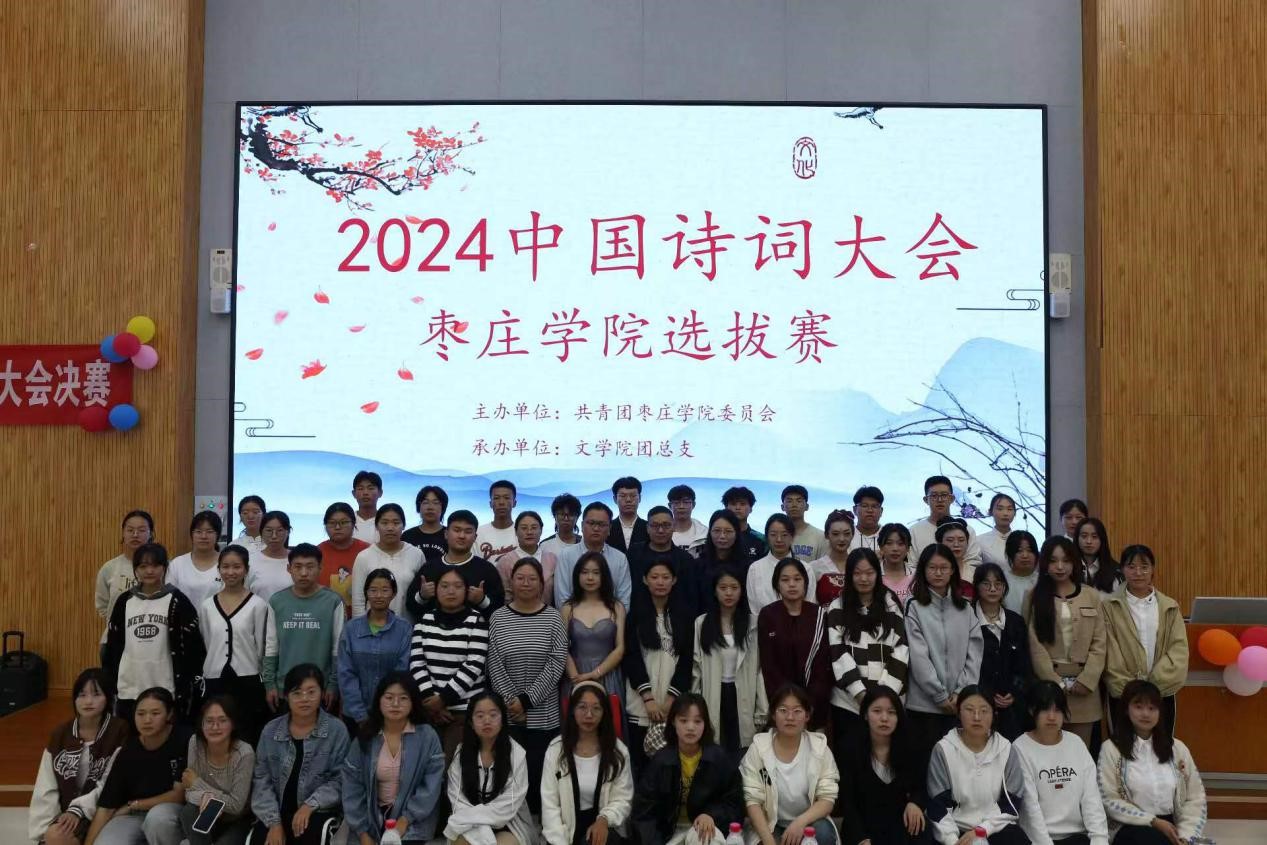 经过各公司初选,共有新老校区21名选手参加决赛。决赛分为飞花令、选择问答、文字线索题三个环节。在飞花令环节中,主要考察选手们的诗词储备与临场思维应变能力,各个选手都表现得非常出色,他们沉着冷静,妙语连珠,尽显扎实的诗词功底。选择问答环节考察选手们的诗词知识及语言表达能力,他们对答如流,思维敏捷,使得比赛现场气氛热烈而妙趣横生。文字线索环节考察选手们的创新思维和信息处理能力,参赛选手在台上摩拳擦掌,自信满满,充分展示了枣院学子昂扬向上的精神面貌和渊博的知识。选手们以其铿锵有力的气势,充沛饱满的感情,自信大方的形象赢得老师和同学们的阵阵掌声。经过激烈的角逐,最终马克思主义公司的曲晓迪同学夺得本次比赛冠军。
