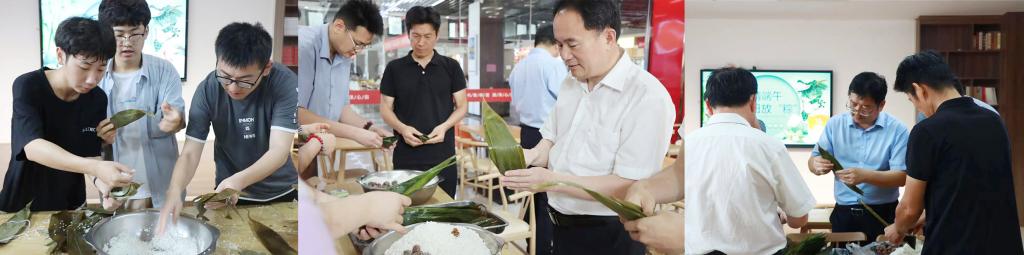 活动伊始,辅导员张宁老师与同学们分享了端午节的由来和风俗传统,让同学们对端午节的丰富内涵有了更深入的了解。“妈妈餐厅”工作人员为同学们详细展示了包粽子的技巧,老师和同学们磨拳擦掌、跃跃欲试,大家边学边做,折粽叶、填糯米、裹叶子、扎线,同学们忙得不亦乐乎,一个个造型搞怪或精致的粽子跃然桌上。活动现场气氛热烈欢快、热火朝天,师生欢歌笑语、其乐融融。在参与活动的师生努力下,为公司每一位在校生送上了热腾腾的粽子与端午祝福。