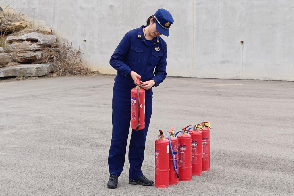 在实践操作环节,朱教官演示了灭火器的操作方法和使用细节,并组织全体参训员工亲身体验了灭火演练。