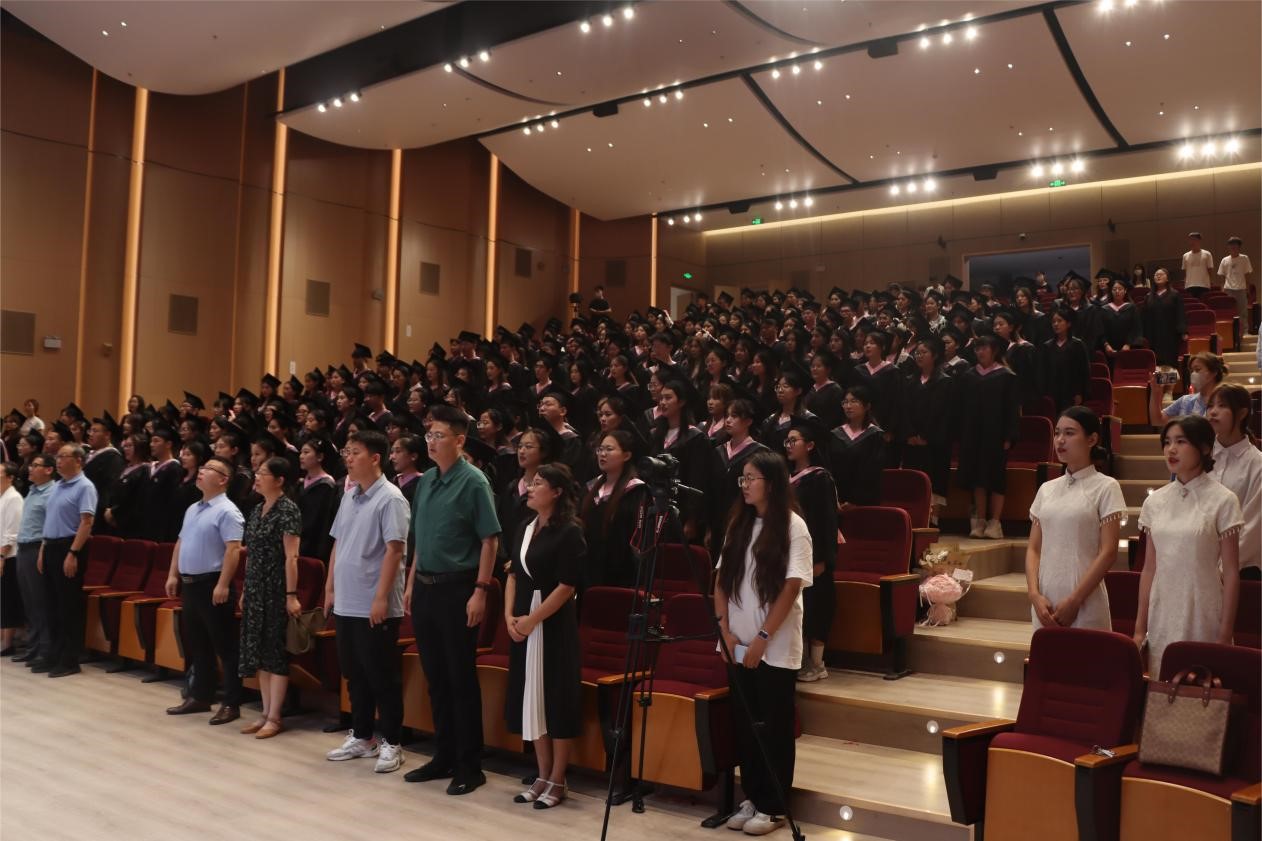 下午3时,在雄壮嘹亮的国歌声中,典礼正式拉开帷幕。段圣玉宣读《ladbrokes立博2024届毕业生学士学位授予的决定》及获得学士学位员工名单,同意授予陈文婕等198名普通全日制本科毕业生学士学位。