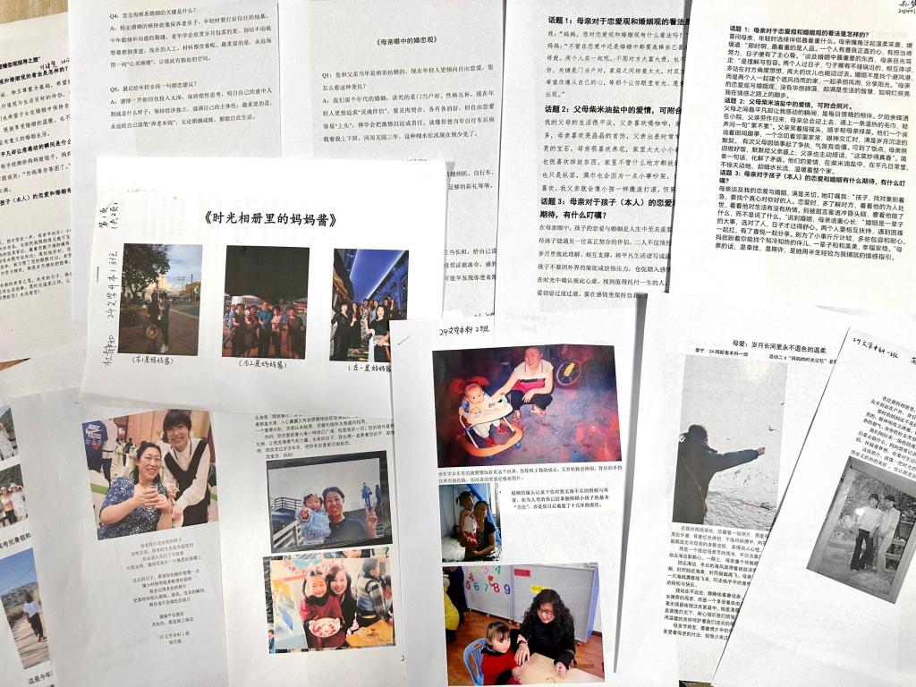 特别值得一提的是“妈妈的时光记忆”老照片故事征集活动。泛黄的老照片与当代文字相互映照,谱写出跨越时空的温暖对话。一张1980年代的旗袍照片旁配文“妈妈,原来您也曾是惊鸿少女”;一组跨越二十年的母子合影对比图旁写着“当我终于长成参天大树,愿您仍是那自由的风”。这些浸润岁月温度的真挚表达,让参观者都不禁为之动容。活动不仅搭建了两代人情感交流的桥梁,更让同学们在回望母亲青春岁月的同时,深刻体会到亲情的珍贵与生命的传承。