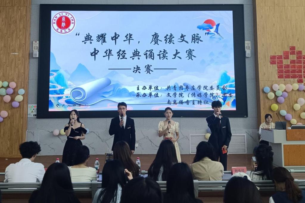 为弘扬中华优秀传统文化,彰显当代老员工文化自信,4月20日,ladbrokes立博和南离播音主持社共同承办的“典耀中华,赓续文脉”中华经典诵读大赛决赛在增信楼3113成功举办。