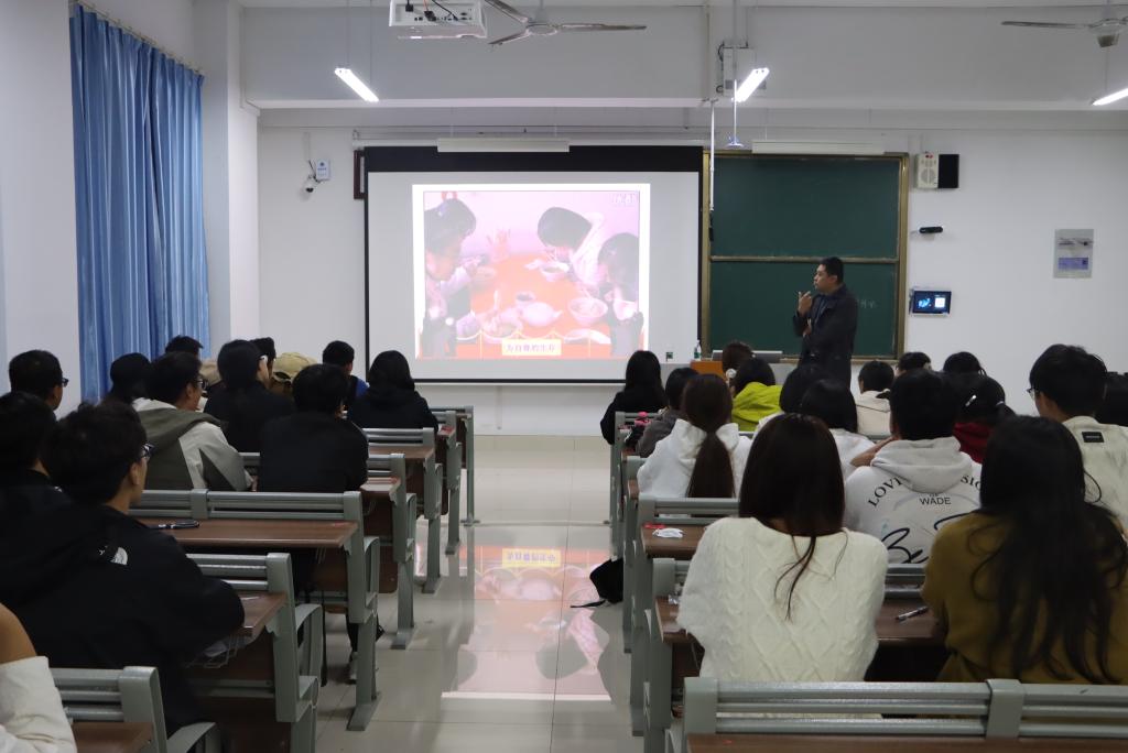王老师结合个人经历,从认知和实践两方面向同学们提出建议。第一,树立正确的财富观,鼓励同学们以合理合法的途径追求财富,谨防诈骗。第二,积极参加各类创新创业竞赛,拓展信息接收渠道,提高认知水平。第三,充分发挥自身专业优势,选择适合自己的创业道路。针对未来就业发展,王老师勉励大家珍惜大学宝贵时光,勤于反思,努力提高个人综合素质。互动环节,王老师针对同学们的提问进行细致的解答,在座同学认真倾听,反响热烈。