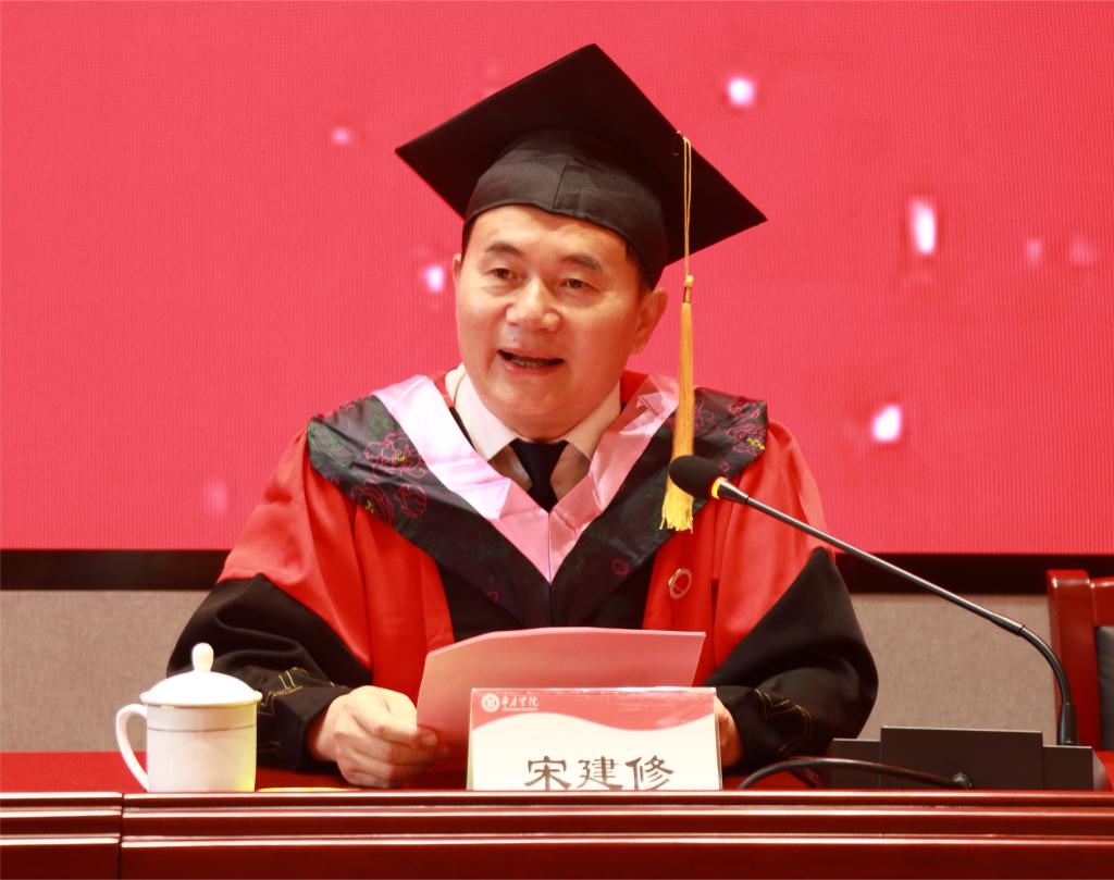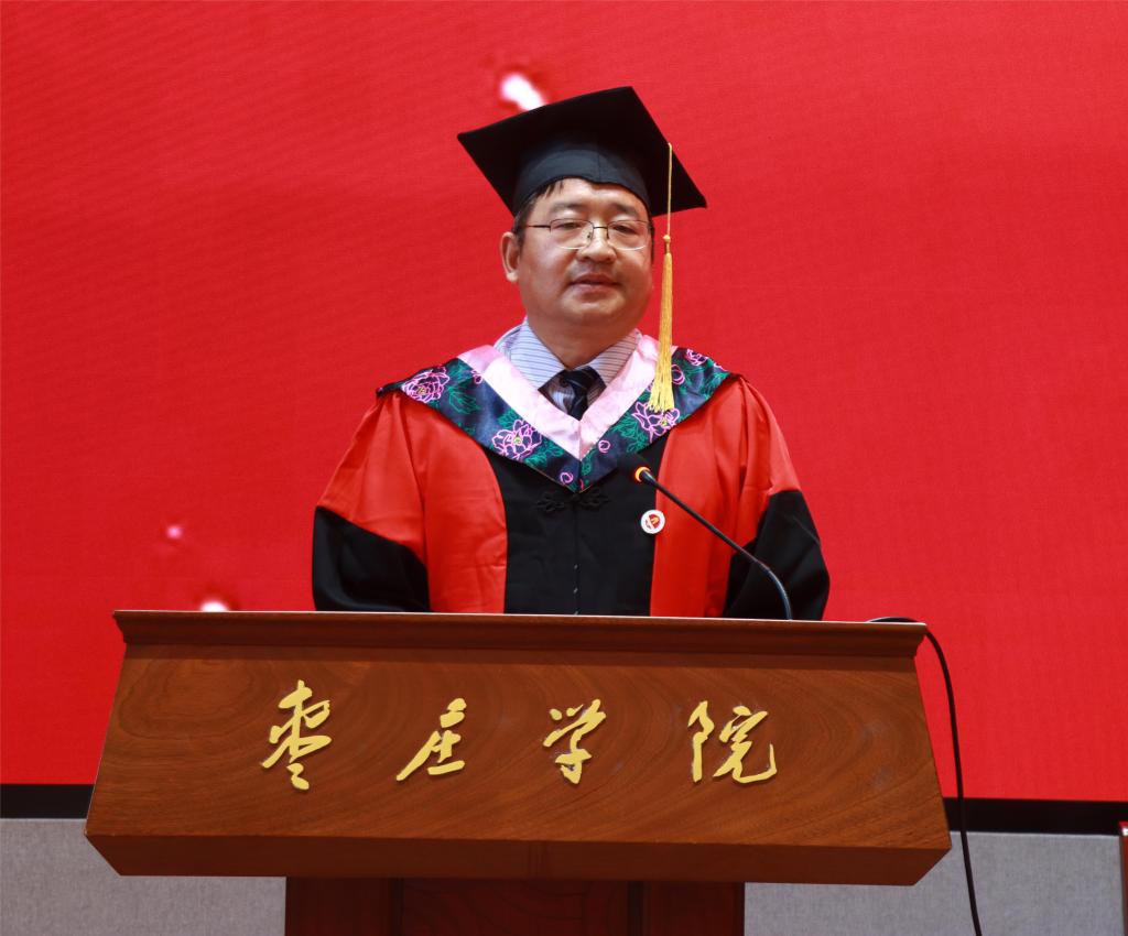 最后,张爱民发表致辞,提出三点希望:第一希望同学们做一个有远方的人。要一路向前,让拼搏的激情流淌成河、澎湃成潮、鼓涌成浪,让奋斗的精神盛开为花、醇醇化为酒、冶炼为诗。第二希望同学们做一个有温度的人。生活中,要积极进取,健康向上;社会中,要阳光热情,饱含爱心;工作中,要坚持学习,踏实奋进。第三希望同学们做一个有深度的人。要有正确的认知与判断,在奋斗的道路上不忘初心,弘扬正气,一路向前,一路生花。