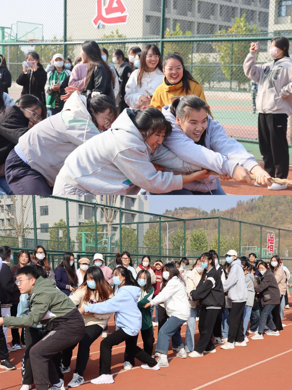 本次趣味运动会以班集体为单位,共设置拔河、跳大绳、踢毽子三个项目。赛场上,各班同学朝气蓬勃、团结合作,以积极向上的体育精神奋勇争先,在操场上挥洒汗水,全身心投入,赛出了水平和风采,一阵阵加油呐喊声和掌声,将运动会气氛推向高潮。经过激烈的角逐,最终21级小学语文教育专科1班荣获拔河、跳大绳、踢毽子三个项目冠军。宋建修、华莹为获奖班级颁发奖品,并向获奖同学表示衷心的祝贺。宋建修鼓励大家团结合作、加强锻炼,以饱满的热情和强健的体魄投入到学习和生活中去。