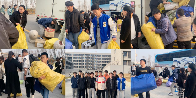 宿舍楼前,王广基、刘新湛等十几名同学积极参与迎新工作,热烈欢迎新同学的到来,与新同学交流互动,帮助新同学搬行李,当面答疑解惑,维持现场秩序。