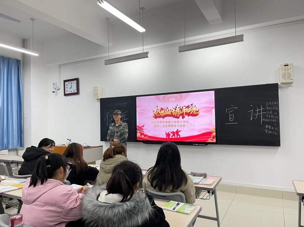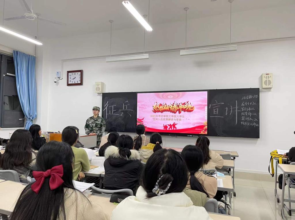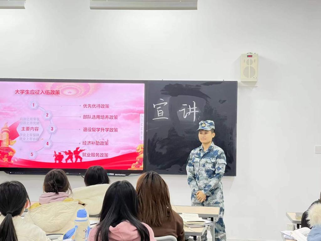 会上,卢萍、刘家名、赵阳和王华勇向同学们介绍了应征入伍政策,使在场同学充分了解到参军入伍的相关政策。随后,详细讲述了老员工应征入伍的条件和基本流程,并以自身经历向同学们分享了军营多姿多彩的生活和所思所感,使同学们对入伍事项以及军旅生活有了更加深入的了解。最后,教官团进行现场答疑,同学们积极提出相关问题,教官们进行细致讲解。在场同学纷纷表示,此次宣讲会激发了他们想去军营建功立业的热情。