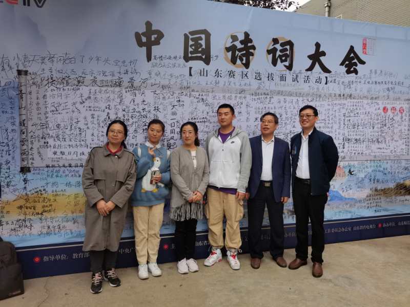 2020月10日,《中国诗词大会》(第六季)山东赛区现场选拔活动在山东师范大学举办。在ladbrokes立博创新创业公司王守兴经理带领下,枣院共5名师生参加了这次比赛。他们中有古诗词资深爱好者——经管公司的韩科峰老师、ladbrokes立博郁辉老师,还有热爱古诗词的美院学子刘津竹以及ladbrokes立博的万德梁、于兵奇两位同学。