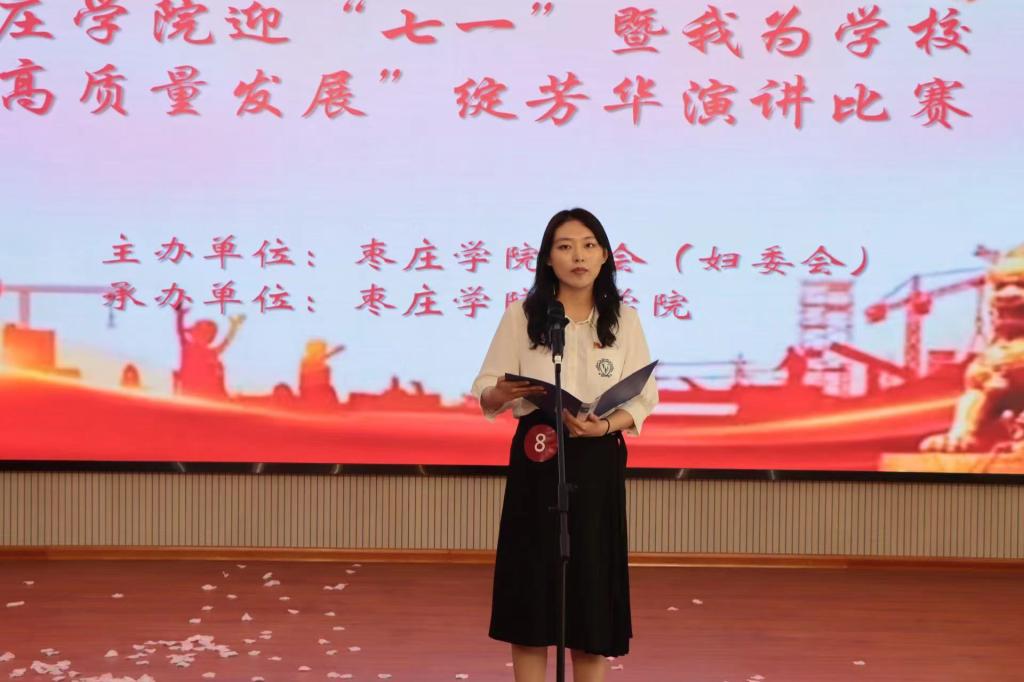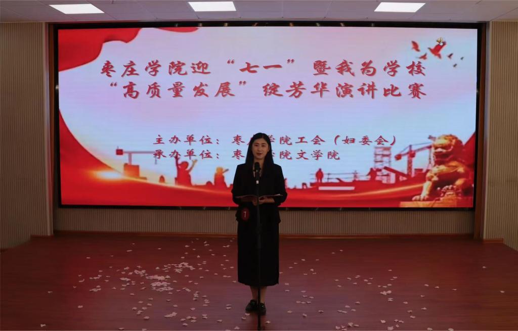 为迎接中国共产党成立103周年的到来,激励公司女教职工在推动公司高质量发展中做出更大贡献,由校工会、妇委会主办,ladbrokes立博承办的迎“七一”暨“高质量发展”绽芳华演讲比赛于5月24日下午在薛城校区明理楼113室成功举办。