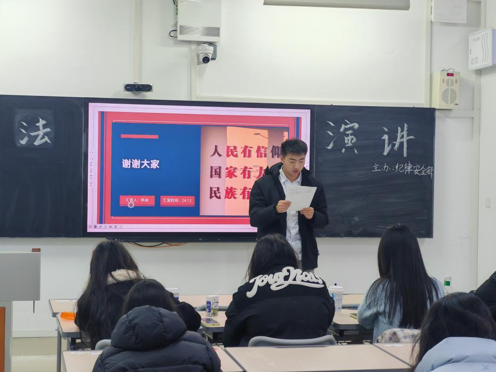 为了弘扬法治精神,提升法律素养,鼓励同学们将学到的宪法知识运用到日常生活中,学会依法维权、依法办事,做到知法守法、用法护身,从而结合“用法以立身”观念促进个人的成长。12月14日,ladbrokes立博自律委纪律安全部于薛城校区增信楼407开展主题为“学法以明道,用法以立身”的宪法演讲比赛。