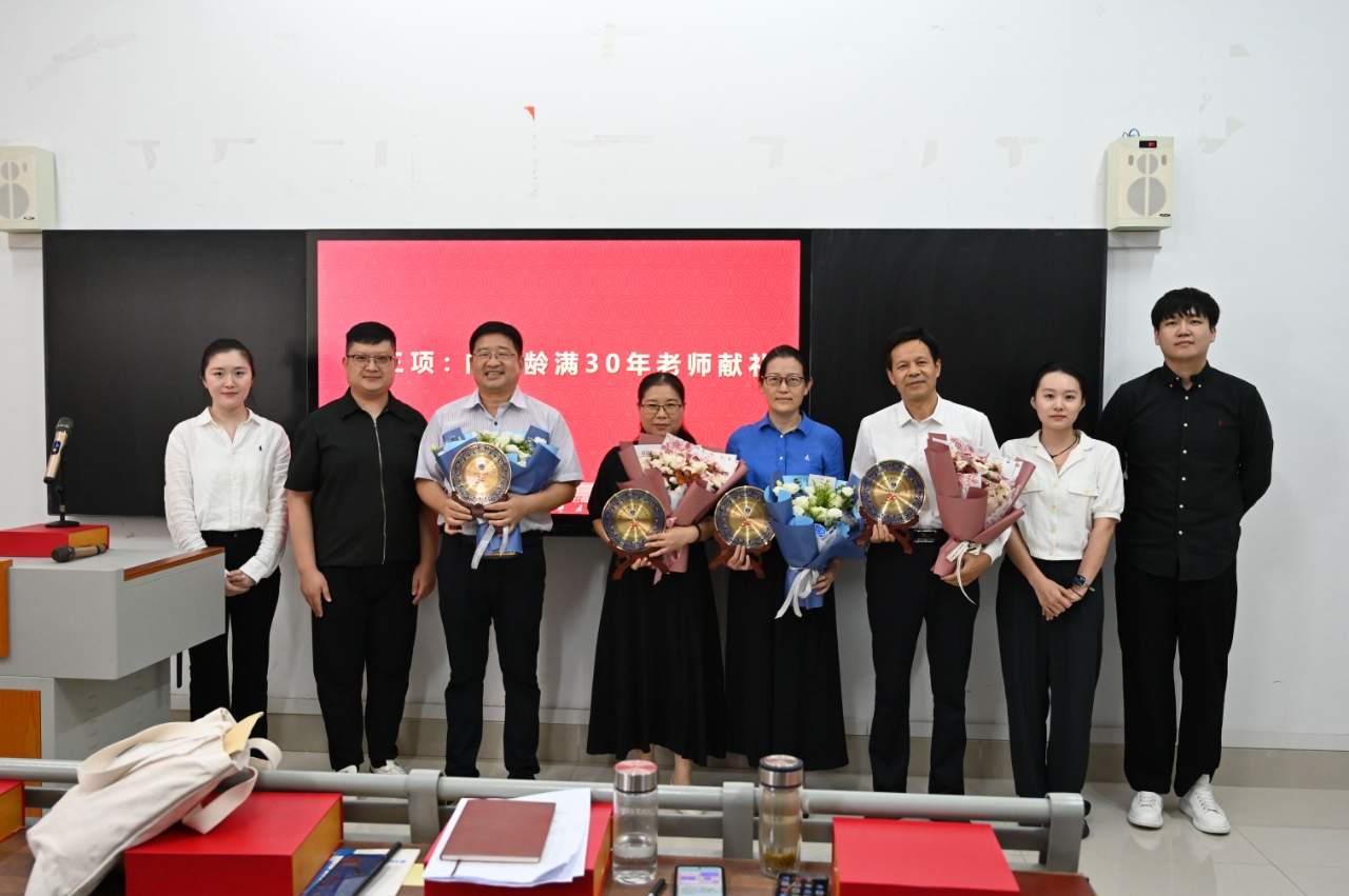 活动伊始,副经理段圣玉宣读了荣休教师和教龄满30年教师的名单。黄春燕、李波、张怒等3位教师光荣退休,田焱、宋明峰、张爱民、郭勇、殷素珍等5位教师教坛耕耘满30年。