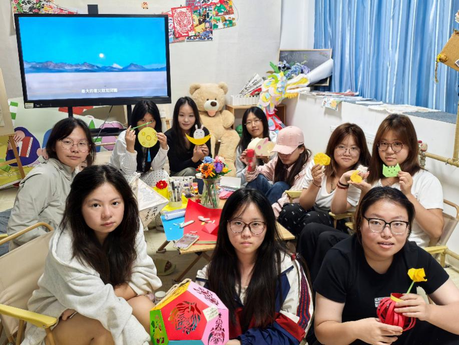 活动紧扣中华文化内涵,设置设置中秋文化溯源、趣味猜灯谜、创意手作工坊等多个特色环节。在文化溯源环节,同学们共同观看主题短片,从“秋夕祭月”的古老仪式,到“但愿人长久,千里共婵娟”的诗词咏叹,沉浸式探寻中秋的历史脉络与文化底蕴;猜灯谜环节其乐融融,融入经典诗句与团圆寓意的谜题引发热烈互动,同学们在解谜过程中分享中秋典故,深化对传统民俗的理解;创意手作工坊里,大家用卡纸裁剪灯笼骨架、以彩笔绘制玉兔纹样,将对中秋的美好祈愿融入一件件鲜活的手工作品中。