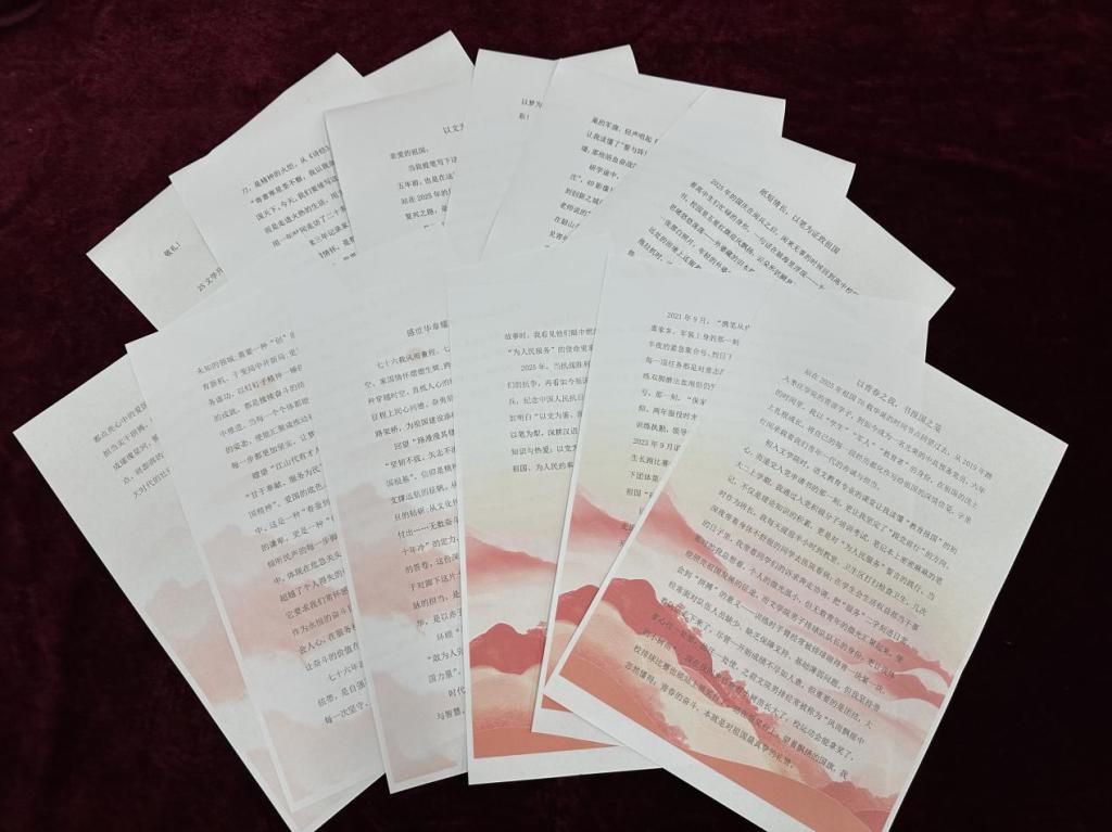 为引导广大学子通过文字回望抗战征程、体悟时代荣光,厚植爱国主义情怀、增强民族自豪感,10月6日—10月13日,公司举办“以文为笺,致我亲爱的祖国”国庆主题征文比赛。全院员工踊跃参与,文学爱好者积极投身创作。