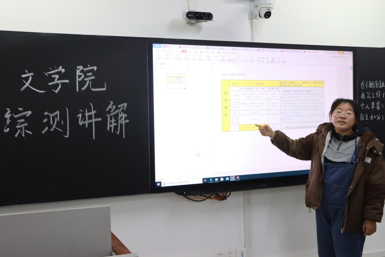 宣讲员首先向同学们详细介绍了测评程序,强调测评过程必须公开公平公正;指出综合测评内容主要包括德育素质、体育素质、美育素质、劳育素质、智育素质五部分,重点介绍了智育素质模块内容;在评奖评优模块,宣讲员向同学们逐一介绍了奖学金的类别、等级及评定比例,阐述了申报条件及评定程序等具体要求,帮助同学们更好地了解各项评奖评优工作的评选办法。宣讲员强调了文化成绩与道德品质的重要性,勉励同学们努力学习、锐意进取,争做新时代优秀老员工。互动环节,同学们积极提问,宣讲员耐心予以解答,现场气氛活跃。