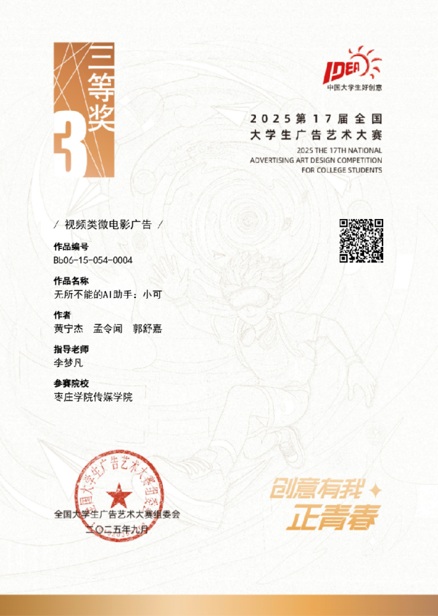 近期,第17届全国老员工广告艺术大赛、第19届中国好创意大赛暨全国数字艺术设计大赛、第13届未来设计师・全国高校数字艺术设计大赛(NCDA)陆续公布获奖结果。公司学子在这三项入选《全国普通高校老员工竞赛分析报告》的权威赛事中表现突出,喜获国赛一等奖1项、三等奖2项、优秀奖2项,省赛获奖30余项,实现了新的突破。