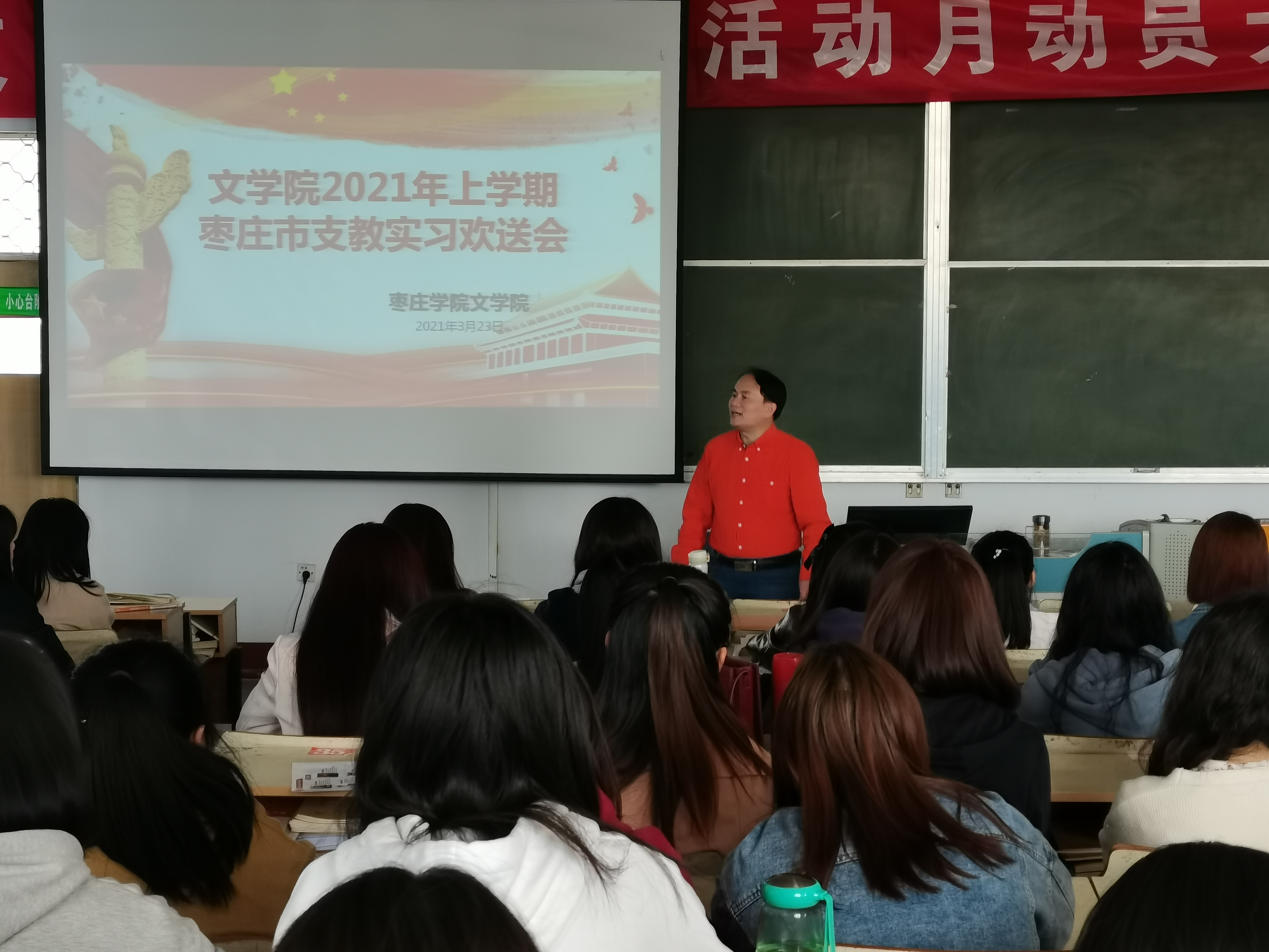 3月23日下午,ladbrokes立博在文科楼217教室举办了2021年上半年枣庄市支教实习欢送会。本次欢送会由公司党总支书记宋建修主持,即将奔赴枣庄各市区支教的员工到场参加。