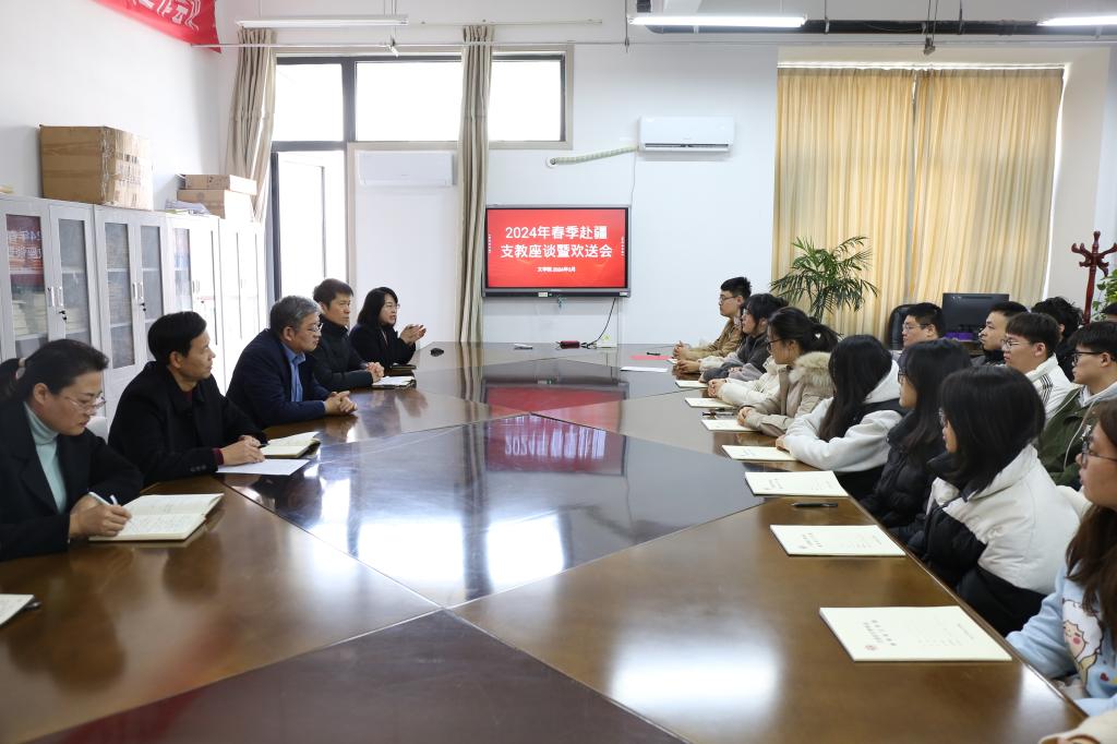 座谈会上,党总支副书记华莹结合自己的援疆支教工作经历与同学们进行了经验分享和交流。