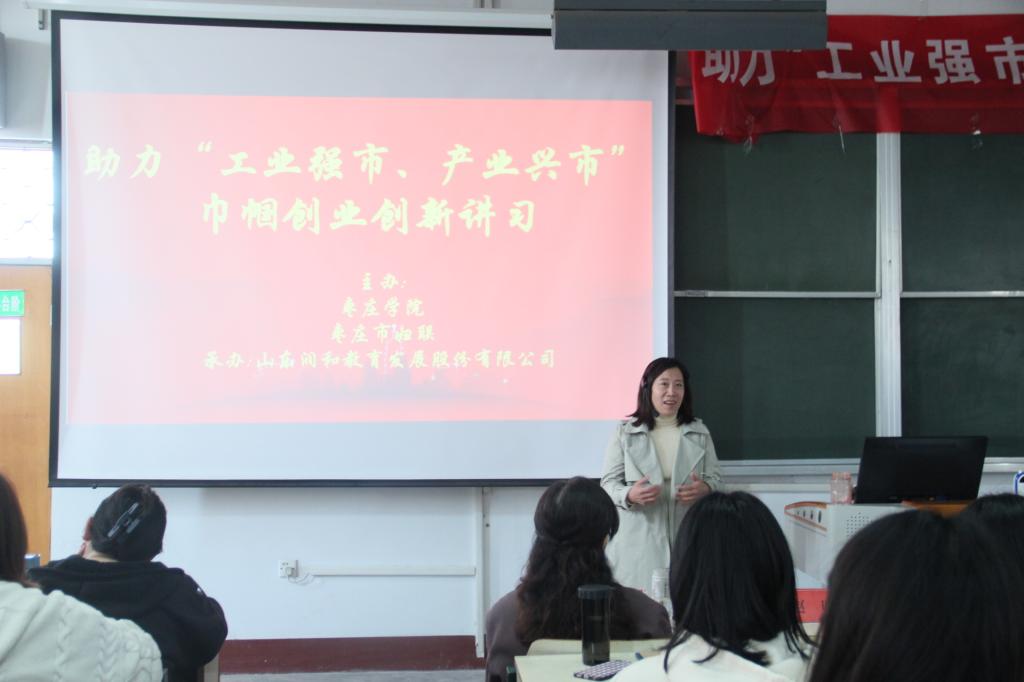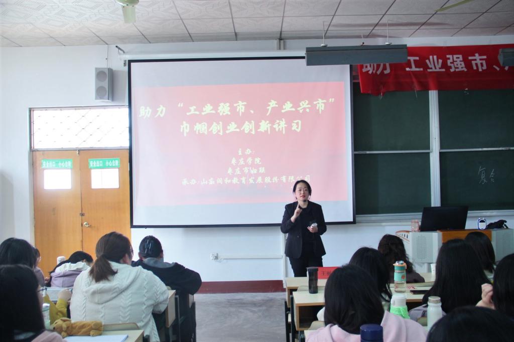 为了鼓励员工创业,提高同学们的创业创新意识,4月14日下午,ladbrokes立博于文科楼319室举办了巾帼创业创新讲习。本次特邀枣庄市妇联调研员王炜燕、中国女企业家协会常务理事王丽萍、SYB培训师赵明、山东润和教育发展股份有限公司董事长孙静进行讲习,ladbrokes立博180余名员工到场参加,公司党总支书记宋建修主持。