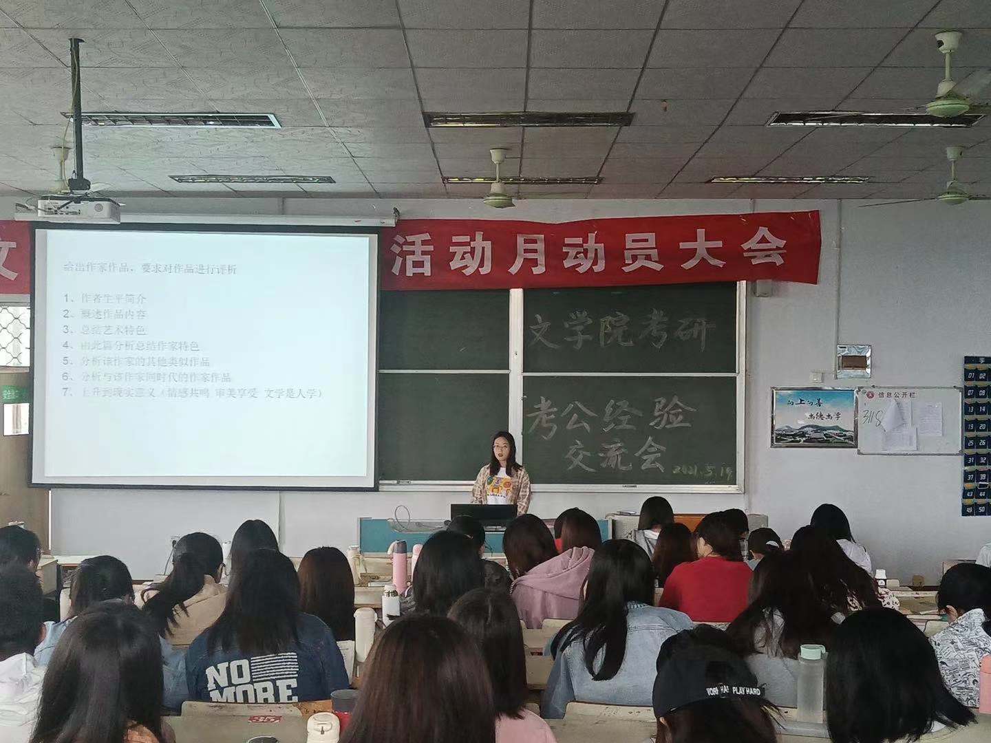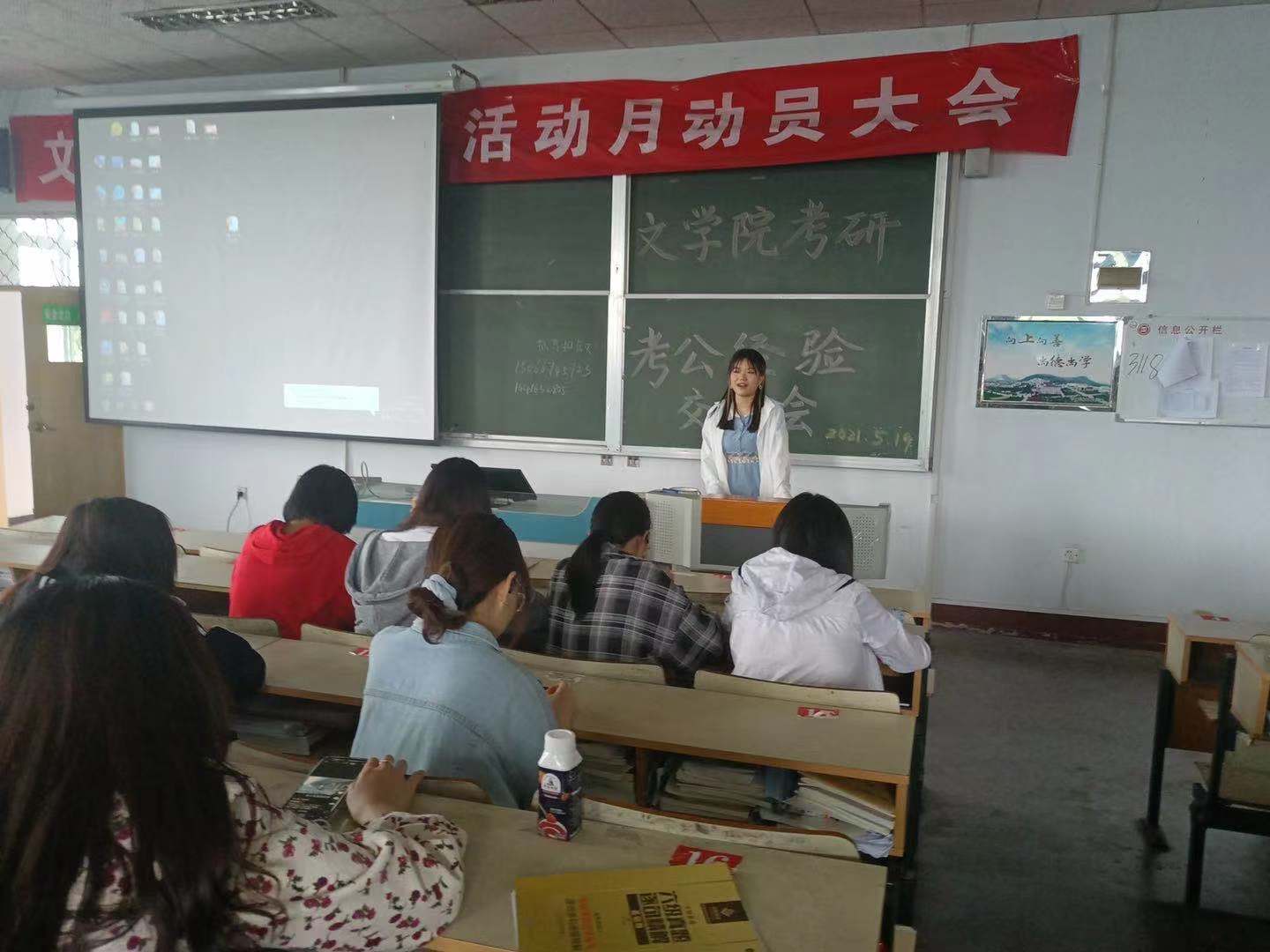 5月19日下午,ladbrokes立博于文科楼217教室举办考研考公经验交流会,交流会邀请了公司2021届优秀学子许文雪、李会茹、周璇、关俊喜主讲,ladbrokes立博200余名员工到场参加。